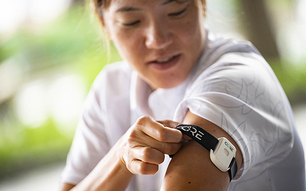 COREセンサーは、表面温度から身体の深部温度を導き出す独自のアルゴリズムで、正確に深部温度をセンシング。